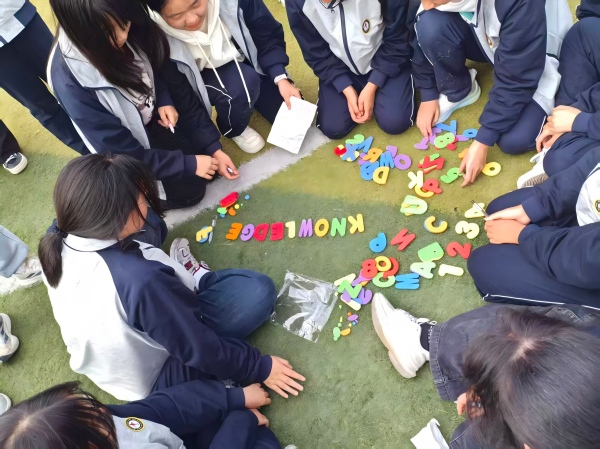 在“人体拼图”环节,团队成员需通过肢体动作协作呈现指定汉字由一名队员进行猜测。该游戏着重锻炼学生的非语言沟通能力、团队配合意识及空间感知力。活动过程中,学生表现出较高的参与热情,并在后续评估中表示,通过实践深刻体会到团队协作的高效性与趣味性。