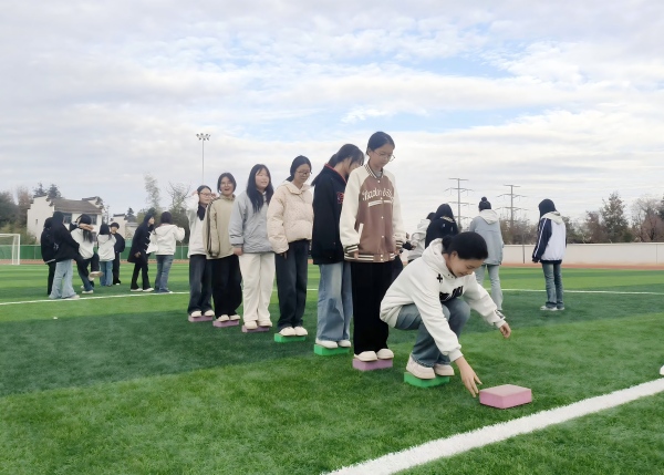 在专业指导下,学生们先后完成了雷区取水“击颠球”团队过河三个主题训练项目。雷区取水项目着重培养学生的问题解决能力和风险决策意识;击鼓颠球项目有效提升了学生的团队协作与专注力;团队过河项目则强化了学生的沟通技巧与策略思维。活动现场互动积极,学生们在沉浸式体验中良好的参与热情。