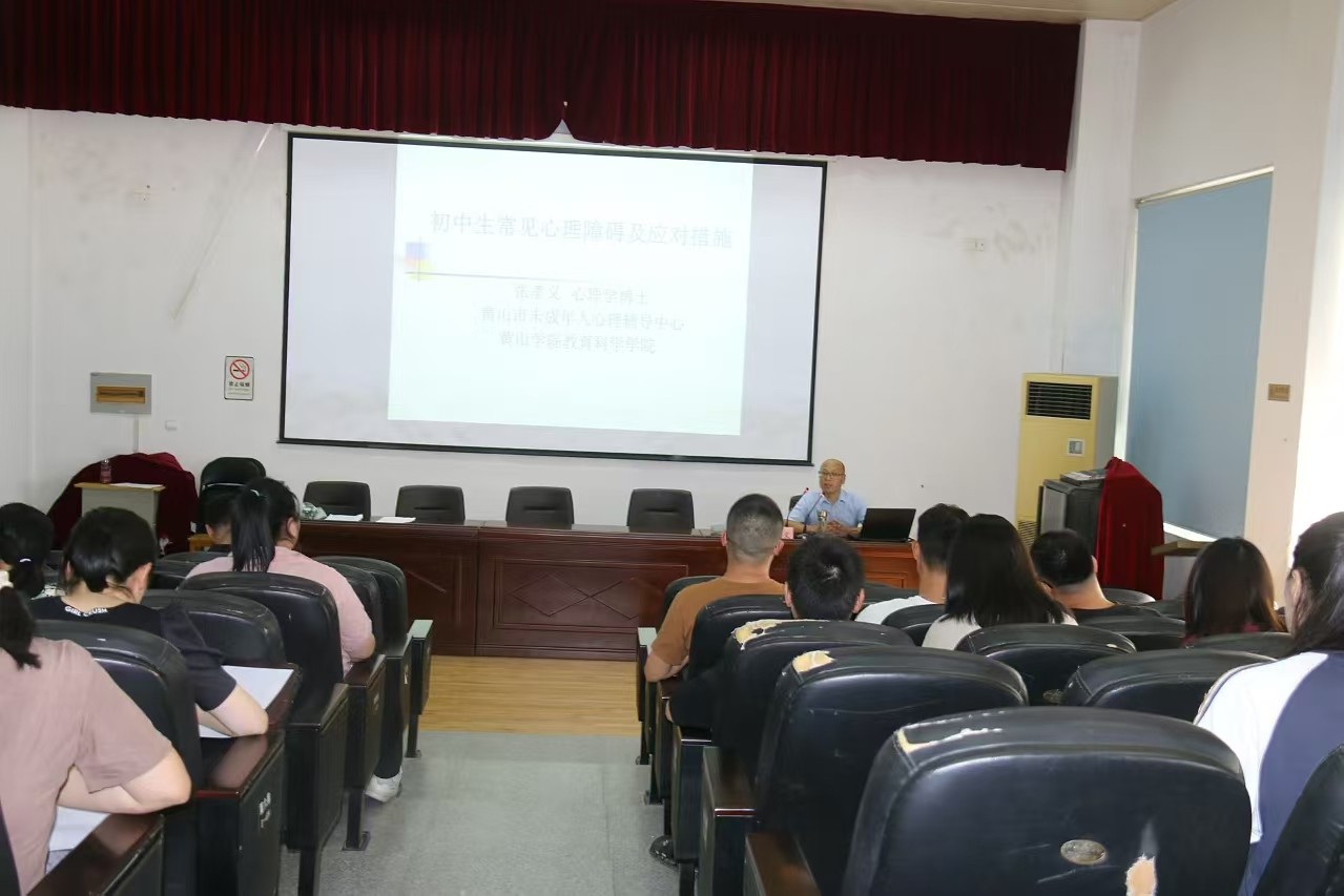 新学期伊始,进一步推动未成年人的心理健康工作,创造和谐稳定的校园环境,帮助未成年人更好健康成长,8月26日下午,黄山市未成年人心理辅导中心张孝义博士,为屯溪四中全体教师带来了以“初中生常见心理障碍及应对措施”为主题的心理健康培训讲座。